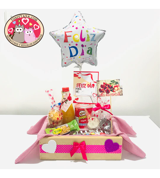 Regala este hermoso Desayuno Regalo sorpresa para Celebrar el especial Feliz día de la madre....nuestra Mamá quedará feliz con todas estas delicias para disfrutar, y cada vez que vaya a su ancheta te recodará. Nuestra madre se merece muchos mimos y lo mejor, por eso hemos diseñado esta linda ancheta picnic de nuestra tienda de regalos y desayunos sorpresa TONI Y TANA.